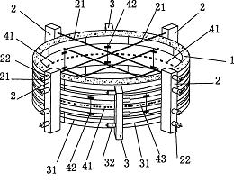 2、如权利要求1所述的一种水压、土压独立加载的盾构隧道结构原型试验 装置,其特征在于:所述的环箍梁(3)为两个,两条或两条以上的环箍锚索(31) 交替地固定在两个环箍梁(3)。
