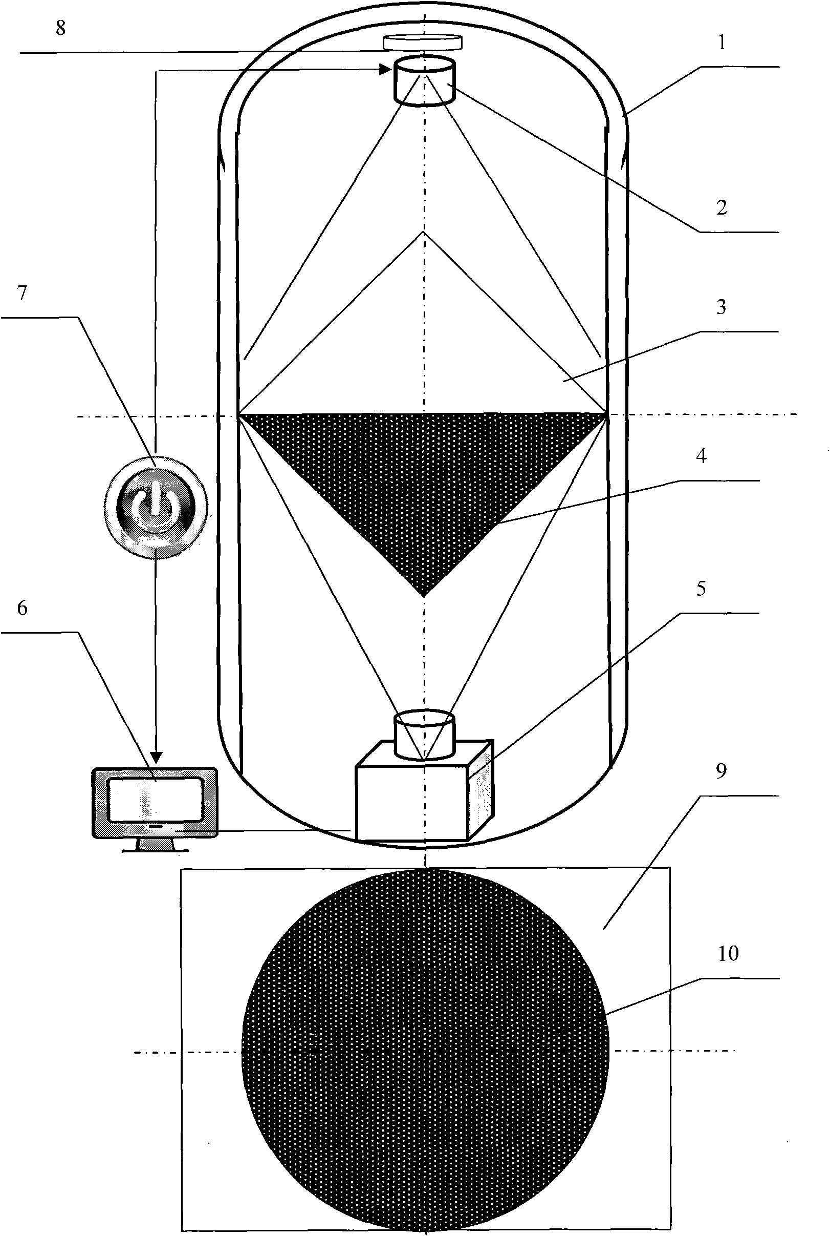 2.如权利要求1所述的基于机器视觉的全方位倾斜传感器,其特征在于:所述的不透光液体,根据动态检测需求选择不透光液体的粘度,对于在垂直方向存在作用力的情况,采用粘度系数高的不透光液体;对于高动态检测水平状态情况,采用用粘度系数低的不透光液体;对不透光液体,选择能很好吸收光的、没有腐蚀性、对温度不敏感、满足粘度范围的液体作为不透光液体。