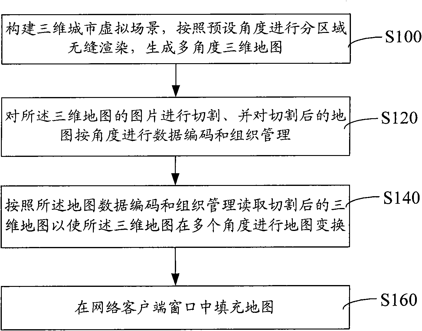 8.根据权利要求1所述的三维仿真城市的多角度地图实现方法,其特征在于,还包括在网络客户端窗口中填充地图的步骤。