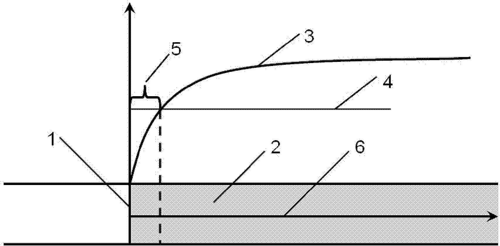 d、根据计算得到的不同位置的瓦斯压力值,利用煤与瓦斯突出危险性多元信息耦合预测仪或手工绘制巷道采面(1)前方煤体(2)内瓦斯压力分布曲线(3)和临界破裂瓦斯压力直线(4),瓦斯压力分布曲线(3)和临界破裂瓦斯压力直线(4)的交点距巷道采面(1)的距离为临界进尺(5);