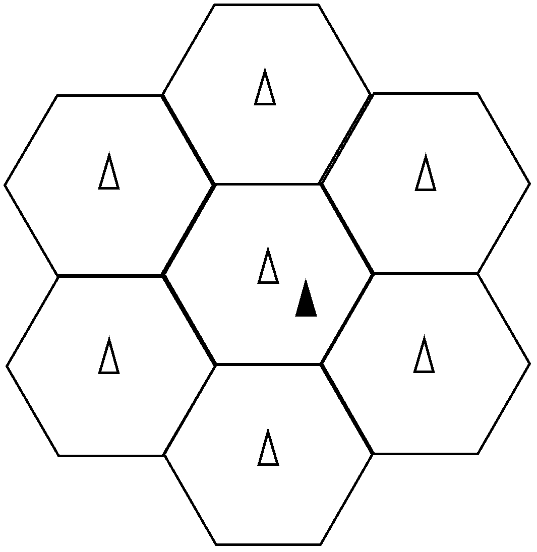 第2.2、根据移动通信系统给定的噪声提升值,确定移动通信系统总的干扰I,其中,系统总的干扰I=Iin+N,Iin为移动通信系统小区内的干扰,N为接收机的噪声;移动通信系统小区内的干扰 由此可以确定移动通信系统在无其它第3、确定移动通信系统存在系统间的干扰时移动通信系统的容量值不同移动通信系统间的干扰主要情形为基站与基站之间的干扰,确定移动通信系统存在其他系统干扰时的容量的具体步骤如下:第3.1、将干扰系统(B)的基站添加到被干扰系统(A)的小区中,干扰系统的基站位置任意,但与被干扰系统的基站分布一样,也采用全向天线的正六边形小区结构;