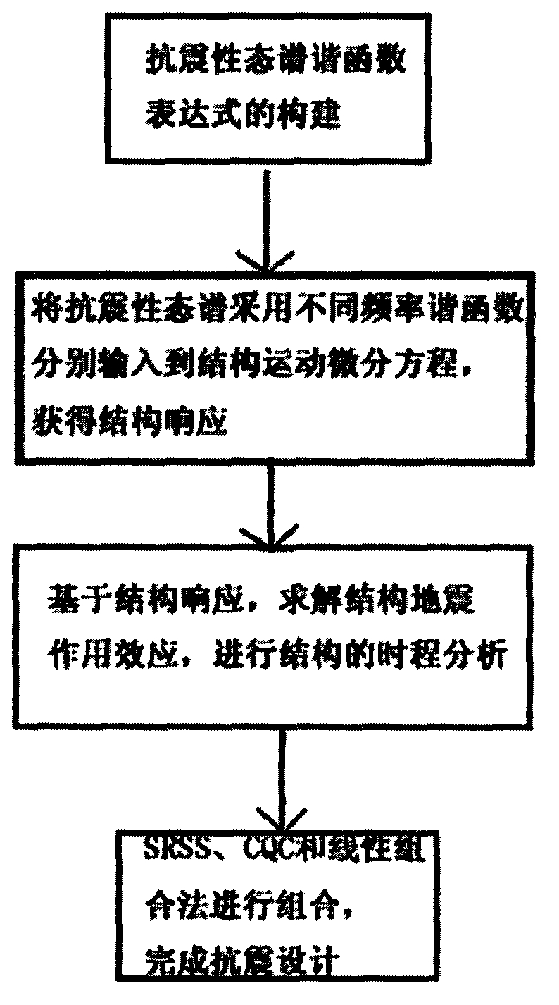 2.根据权利要求1所述的基于性态谱谐函数的抗震设计方法,其特征在于:所述抗震性态谱谐函数表达式的构建方法为:(1)、将抗震性态谱视作目标谱;(2)、基于目标谱和功率谱的转换关系,通过反复迭代的方式,获得了性态谱为目标谱的地震动三角函数解析表达式;(3)、将目标谱的地震动三角函数解析表达式代入单自由度运动微分运动方程,获得抗震性态谱谐函数表达式。