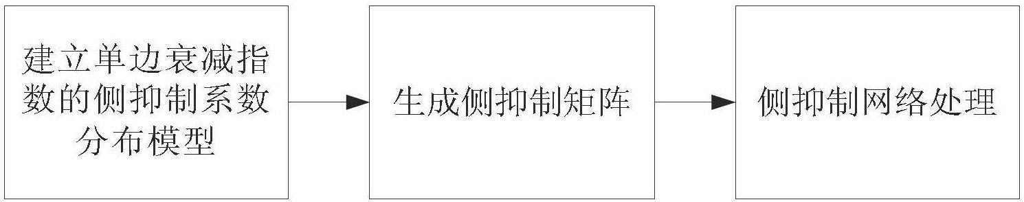 3.根据权利要求1所述的方法,其特征在于,将单边衰减指数模型转换为侧抑制系数分布模型具体为,将单边衰减指数函数的横坐标由时间t转变为感受器单元Ni,j和Np,q之间的距离dij,pq,其中Ni,j表示位置为(i,j)的中心感受器单元,Np,q表示位置为(p,q)的感受器单元;纵坐标由关于时间t的函数f(t)转换为关于感受器单元距离dij,pq的侧抑制系数kij,pq。