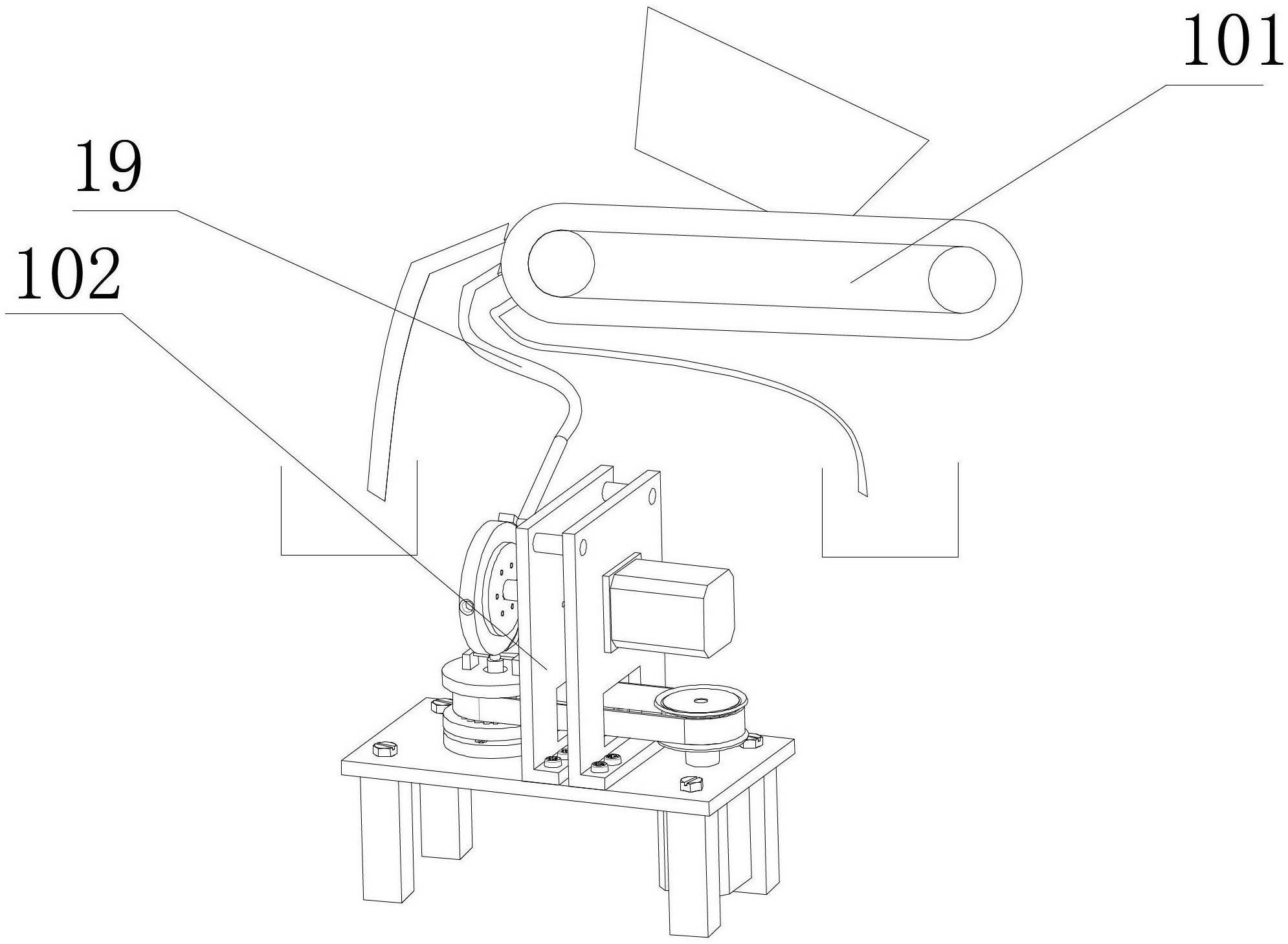1.一种钢球表面质量检测系统,其包括分选机构与检测机构,所述分选机构位于所述检测机构上方,用于为所述检测机构提供待检测的钢球,其特征在于,所述检测机构包括机架,所述机架上设置有内支架,所述内支架上设置有能旋转的电涡流检测支架,所述电涡流检测支架上设置有电涡流检测探头,所述电涡流检测支架与所述内支架上端形成用于放置钢球的检测腔,所述电涡流检测支架能绕所述检测腔旋转;所述检测腔上方设置有用于导入钢球、搓动钢球最终将对应钢球导出的展开结构,所述检测腔始终处于静止状态,所述展开结构搓动所述检测腔内的钢球,所述电涡流检测支架带动所述电涡流检测探头围绕所述检测腔旋转,对钢球进行检测。2.根据权利要求1 所述的钢球表面质量检测系统,其特征在于,所述电涡流检测支架上设置有旋转带轮,所述旋转带轮下端通过一角接触球轴承设置在所述内支架上。3.根据权利要求1 所述的钢球表面质量检测系统,其特征在于,所述展开结构包括一由聚氨基甲酸酯材料制成的展开轮与一环形进球挡板,所述展开轮能在所述环形进球挡板内转动,所述展开轮外沿设置有弹性层,所述环形进球挡板设置有一进球口,所述环形进球挡板与所述检测腔对应处设置有一缺口;所述展开轮外沿上设置有进球窝与出球窝,所述进球窝与所述出球窝位于所述展开轮同一直径的两端,所述进球窝用于将对应的钢球导入所述检测腔,所述出球窝用于将对应钢球导出所述检测腔。4.根据权利要求3 所述的钢球表面质量检测系统,其特征在于,所述展开轮上外层设置有聚四氟乙烯层;所述进球窝与所述出球窝的高度大于等于被检测钢球的直径。5.根据权利要求3 所述的钢球表面质量检测系统,其特征在于,所述分选机构包括用于盛放钢球的料斗,所述料斗下方设置有倾斜布置的球径分选皮带,所述球径分选皮带上设置有至少一个选球通道。6.根据权利要求5 所述的钢球表面质量检测系统,其特征在于,所述选球通道自上而下设置有至少三层选球槽,选球槽之槽口的口径自上而下逐步减小。7.根据权利要求5 所述的钢球表面质量检测系统,其特征在于,所述球径分选皮带为闭环式循环皮带,所述球径分选皮带的两端分别设置有能转动的皮带滚筒。8.根据权利要求5 所述的钢球表面质量检测系统,其特征在于,所述料斗位于所述球径分选皮带上端,所述料斗上设置有一出料口,所述出料口紧贴在所述球径分选皮带表面上。9.根据权利要求6 所述的钢球表面质量检测系统,其特征在于,每一层选球槽对应一个导出通道,至少一层选球槽与所述进球口相连通。