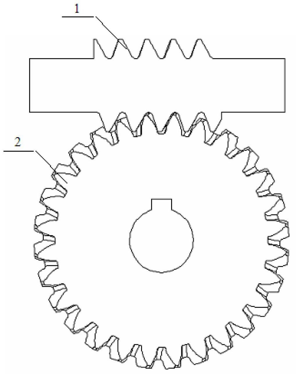 1.一种非对称渐开线蜗杆蜗轮副,包括蜗杆(1)和蜗轮(2),其特征在于:蜗杆(1)的轮齿两侧分别具有蜗杆啮合侧齿廓(3)和蜗杆非啮合侧齿廓(4),蜗轮(2)的轮齿两侧分别具有蜗轮啮合侧齿廓(5)和蜗轮非啮合侧齿廓(6),其中,蜗杆(1)的轴向模数为m1,蜗轮(2)的端面模数为m2,蜗杆啮合侧齿廓(3)的压力角为α1,蜗杆非啮合侧齿廓(4)的压力角为α2,蜗轮啮合侧齿廓(5)的压力角为α3,蜗轮非啮合侧齿廓(6)的压力角为α4,蜗杆啮合侧齿廓(3)的齿顶高系数为 蜗杆非啮合侧齿廓(4)的齿顶高系数为 蜗杆啮合侧齿廓(3)的顶隙系数为 蜗杆非啮合侧齿廓(4)的顶隙系数为 在蜗杆(1)、蜗轮(2)两轴夹角Σ=90°的情况下,为了保证蜗杆蜗轮能正确啮合,满足以下四个条件:a、α1>α2,α3>α4;