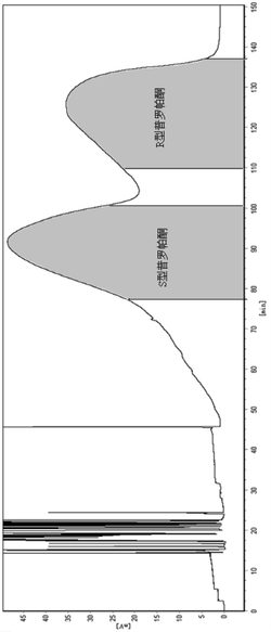 (4)将前峰和后峰洗脱液分别用1mol/L氢氧化钠溶液碱化至pH11,析出白色粉末后直接用二氯甲烷多次萃取,合并二氯甲烷层,用饱和食盐水洗涤二氯甲烷层至中性,用无水硫酸钠干燥,过滤后蒸除溶剂即分别得到左旋普罗帕酮和右旋普罗帕酮粗品,分别用二氯甲烷溶解粗品后加入正己烷重结晶,分别得到纯化的左旋普罗帕酮和右旋普罗帕酮。