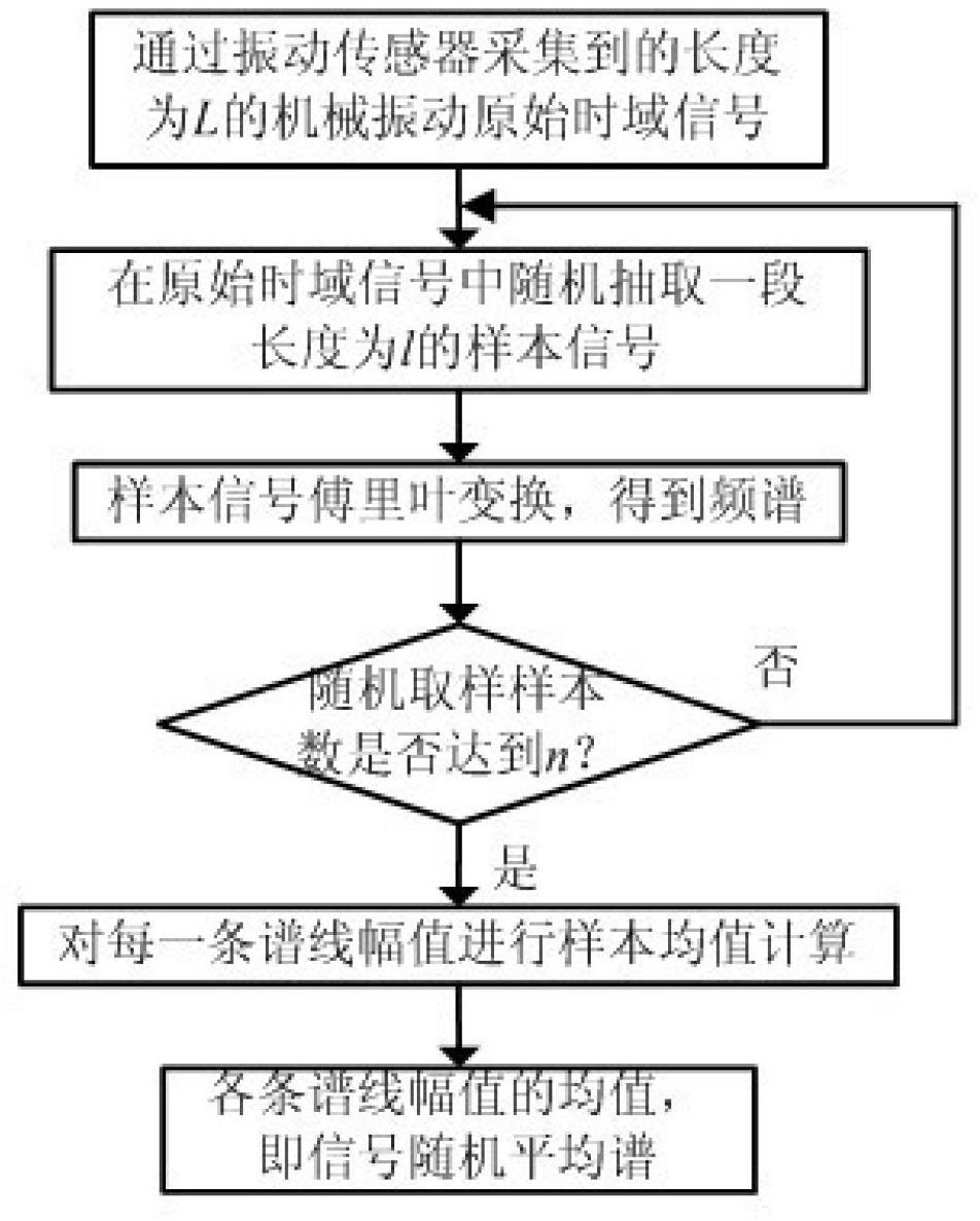 1.一种信号随机平均谱的数据处理方法,包括通过振动传感器采集到的长度为L的机械振动原始时域信号,其特征在于:(1)在原始时域信号中随机抽取n段样本信号,n段样本信号相互统计独立,并保证所得n段样本信号的长度l相同,且满足l