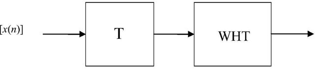 因此WHNMNT首先进行T变换,然后再进行沃什哈达玛变换,逆变换采用相同的方式,利用新梅森变换逆矩阵与沃什-哈达玛矩阵结合形成逆T矩阵,再经过沃什哈达玛变换得到{xr}。