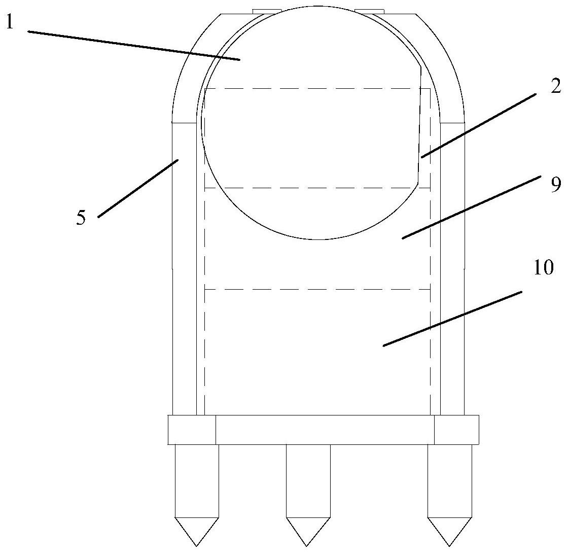1.一种井下巷道围岩表面变形激光测量装置,包括由光束投射器和光接收器组成的激光测距仪(1),由舵机和输出轴构成的传动机构(2),其特征在于:还包括防爆机壳(5),防爆机壳(5)内依次设有电源(10)、单片机控制芯片(9)、传动机构(2),防爆机壳(5)的左侧设有与传动机构(2)相连的激光测距仪(1),右侧设有SD卡传输口(4),顶部设有显示屏(3)、水平测量仪(7)、按钮一(8-1)和按钮二(8-2),所述的防爆机壳(5)前后两侧装有用于测量截面定位的激光打线器(6),激光测距仪(1)与传动机构(2)通过内部电路和单片机控制芯片(9)连接,单片机控制芯片(9)上设有与激光测距仪(1)平行的电子罗盘,用于测量方向的定位,单片机控制芯片(9)分别对激光测距仪(1)、传动机构(2)、显示屏(3)、SD卡传输口(4)、激光打线器(6)进行控制,传动机构(2)的舵机输出轴上的转臂与激光测距仪(1)固结,通过控制传动机构(2)的舵机带动激光测距仪(1)进行180°间歇性的转动,测量巷道表面变形数据,通过SD卡传输口(4)存储到SD卡,通过计算机软件对SD卡中存储的数据进行处理;所述的防爆机壳(5)下部设可调高度、能转动的三脚架;所述的电源(10)采用防爆型锂离子电池和安全防护型锂电池充电板;激光测距仪(1)将采集到的巷道表面变形数据经过数字化处理后通过SD卡传输口(4)存储到SD卡,通过计算机软件对SD卡中存储的数据进行处理,计算机软件单元由测量数据输出单元和变形分析及危险预测单元构成,测量数据输出单元可以导出巷道表面变形原始数据,变形分析及危险预测单元可以绘制巷道图形,并分析巷道各个点位的数据变形,预测巷道的危险性。