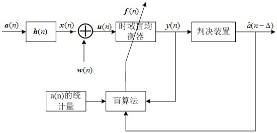 步骤A,发射信号a(n)经过信道h(n)得到信道输出信号x(n):x(n)=h(n)a(n);其中a(n)为发射信号,是独立同分布的;h(n)是有限脉冲响应信道;n为时间序列;T表示转置;