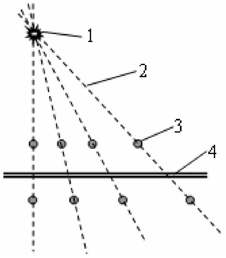 第二步:测试节理的法向和切向刚度,沿待测试节理走向,选择能够反映节理力学特性的试验区段,试验区段要求表面相对平整;在试验区段布置4条测线,并对测线进行编号,4条测线的入射角分别为0°、20°、40°和60°,所有测线汇交于一点,该点为振源处,即施加冲击载荷的作用点;沿每条测线,在节理两侧布置两个二分量加速度传感器,用石膏粉将传感器粘结在试验区域的表面,一个分量平行节理走向布置,另一个分量垂直节理走向布置,以下简称在振源方向的半侧为入射侧,简称另一侧为透射侧,入射侧和透射侧的传感器与节理的距离均为15cm;冲击载荷产生的振动为振源,振源处与节理间的距离为1.0m;记录各传感器、振源和节理的位置坐标后,采用冲击载荷产生应力波,记录各传感器的振动波-2形;传感器参数为:电荷灵敏度10.427~14.091pC/ms ,频响范围0.2~5kHz,谐振频率