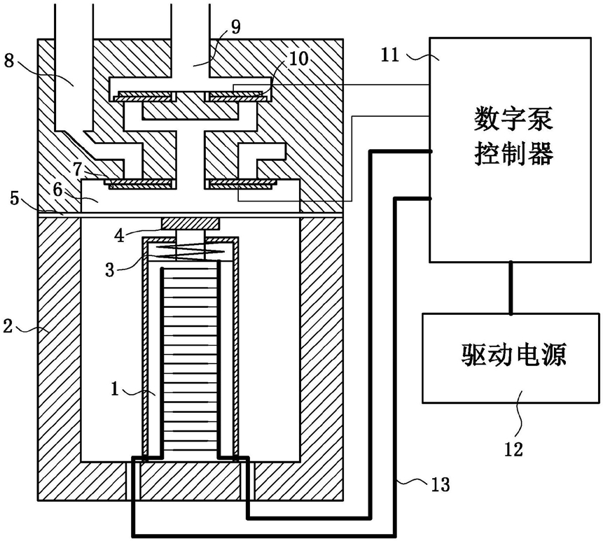 3.根据权利要求1所述的基于压电陶瓷驱动的数字液压泵,其特征在于:通过控制器的数字信号控制压电叠堆致动器中参与驱动的层数来实现数字液压泵流量数字化的控制。