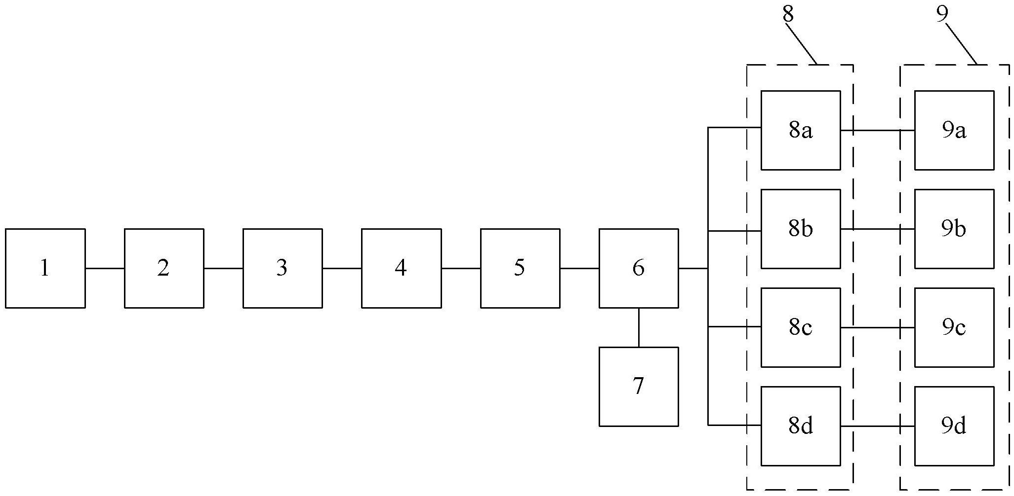 1.一种电力谐波的自适应滤波方法,使用的自适应滤波器的组成是:电流传感器(1)、电压跟随器(2)、放大器(3)、抗混叠滤波器(4)、数据采集卡(5)、中央处理单元(6)、继电器组(8)、调谐滤波器组(9)依次相连;中央处理单元(6)还和高速存储器(7)相连;所述的调谐滤波器组(9)由3次单调谐滤波器(9a)、5次单调谐滤波器(9b)、7次单调谐滤波器(9c)和高通滤波器(9d)组成;继电器组(8)由继电器一(8a)、继电器二(8b)、继电器三(8c)和继电器四(8d)构成;继电器组(8)与调谐滤波器组(9)相连的具体结构是,继电器一(8a)与3次单调谐滤波器(9a)串接、继电器二(8b)与5次单调谐滤波器(9b)串接、继电器三(8c)与7次单调谐滤波器(9c)串接、继电器四(8d)与高通滤波器(9d)串接;