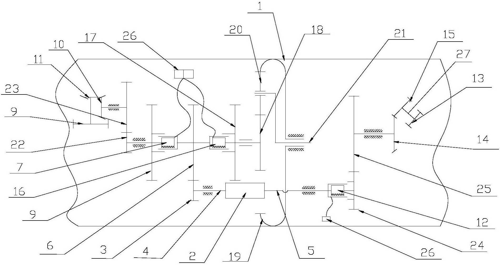 2.根据权利要求1所述的欠驱动三自由度复合关节,其特征在于:所述侧摆运动传动组件包括电磁离合器1、侧摆动力输入齿轮、侧摆动力锥齿轮传动副和侧摆动力输出齿轮,所述侧摆动力锥齿轮传动副的主动锥齿轮和从动锥齿轮以轴线在竖直平面内垂直相交的方式嗤合,主动锥齿轮与侧摆动力输入齿轮传动配合,从动锥齿轮与侧摆动力输出齿轮同轴固定,所述电磁离合器I动力输入端与主驱动齿轮传动副的从动齿轮传动,动力输出端与侧摆动力输入齿轮同轴固定。