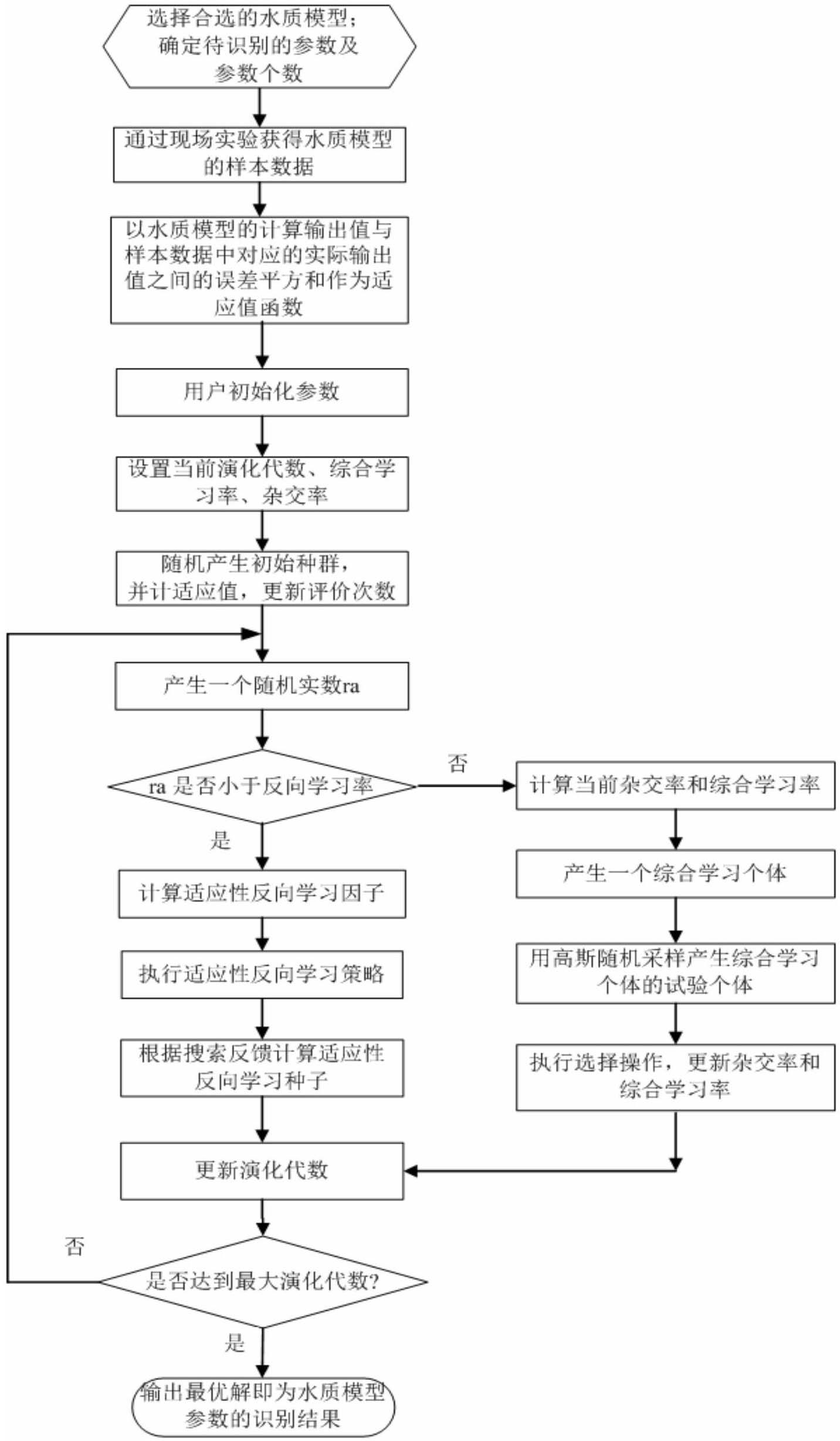 1.基于反向精简差分演化算法的水质模型参数识别方法,其特征在于,包括以下步骤:步骤1,根据待研究的水质规律问题的实际情况选择合适的水质模型,并针对选择的水质模型确定待识别的参数,以及待识别参数的个数D;