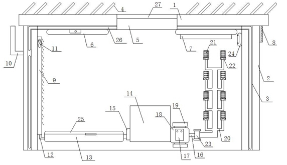 6.根据权利要求1所述的一种改进的温室,其特征在于:所述透光保温天花板(5)外部设有保护盖板(27)。