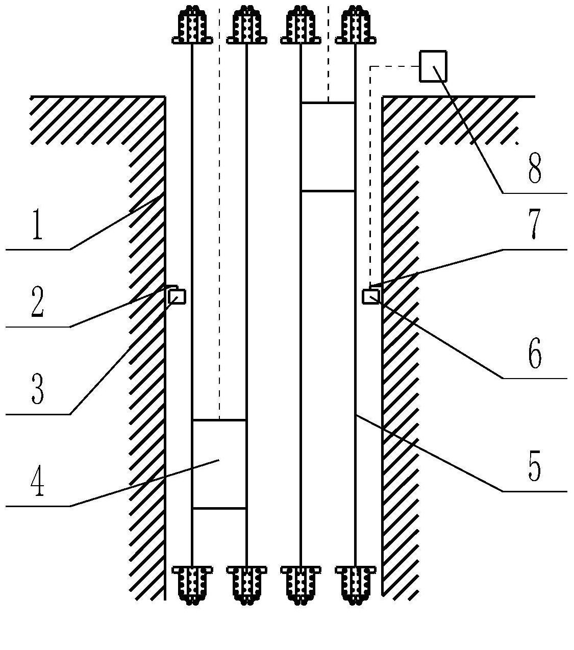 1.一种立井罐道钢丝绳摆动检测装置,其特征在于:包括光电检测系统,所述光电检测系统包括平行光源发生器和光电转换装置,所述平行光源发生器和光电转换装置分别位于待测点所在高度处井壁上相对的两侧且平行光源发生器与光电转换装置对正,所述立井罐道钢丝绳处于平行光源发生器和光电转换装置之间,所述光电转换装置连接到上位机。