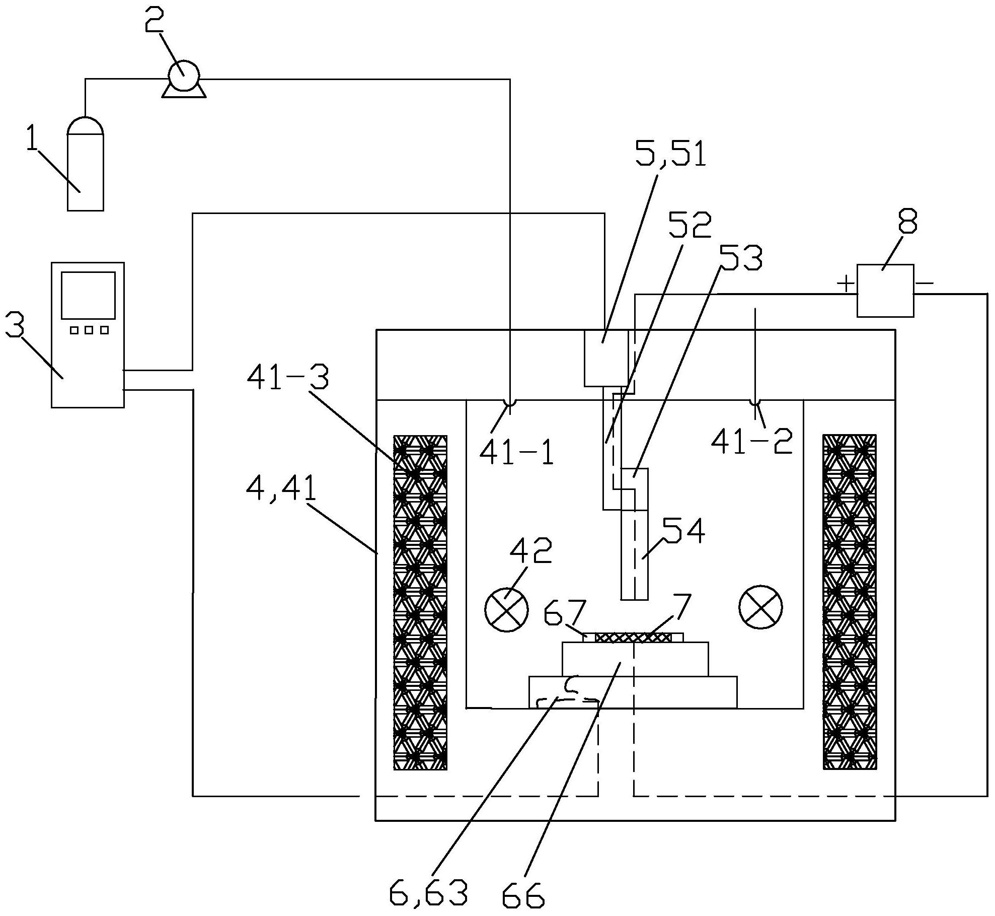 夹具(67)的材质为耐酸、耐高压和高硬度的绝缘工程塑料;夹具(67)设置在Y向移动块(66)的上端面上,用于使用时夹持阴极基体(7);使用时,阴极基体(7)与直流电源(8)的负极电连接;