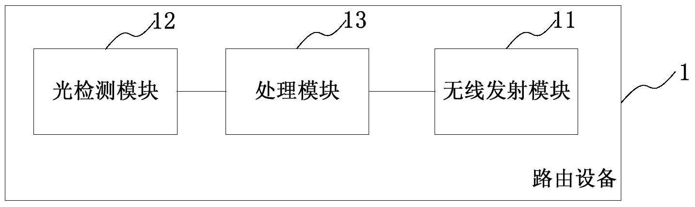 8.根据权利要求1所述的路由设备,其特征在于:还包括:第一重置模块,用以当所述光检测模块检测到的光强度值超过预设光强度值范围时,重置所述光检测模块。