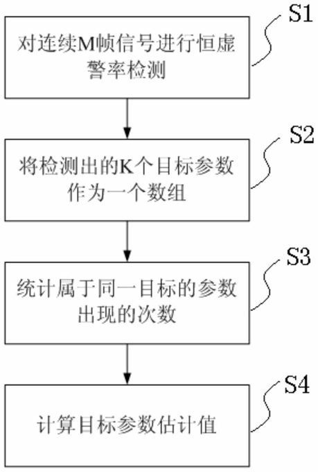 1.一种基于恒虚警率的概率统计目标检测方法,其特征在于,包括以下步骤:① 对输入的连续M帧信号进行恒虚警率检测,假设检测出K个目标,将该K个目标参数存入一个数组中,其中K、M均为整数;