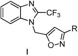 3.如权利要求2所述的1-[3-R-异噁唑-5-亚甲基]-2-三氟甲基-1H-苯并咪唑[d],其特征在于:取代苯基上的取代基优选下列之一:3-Br,4-F,4-Cl,4-CH3,4-OCH3,4-CF3,2-Cl,2,