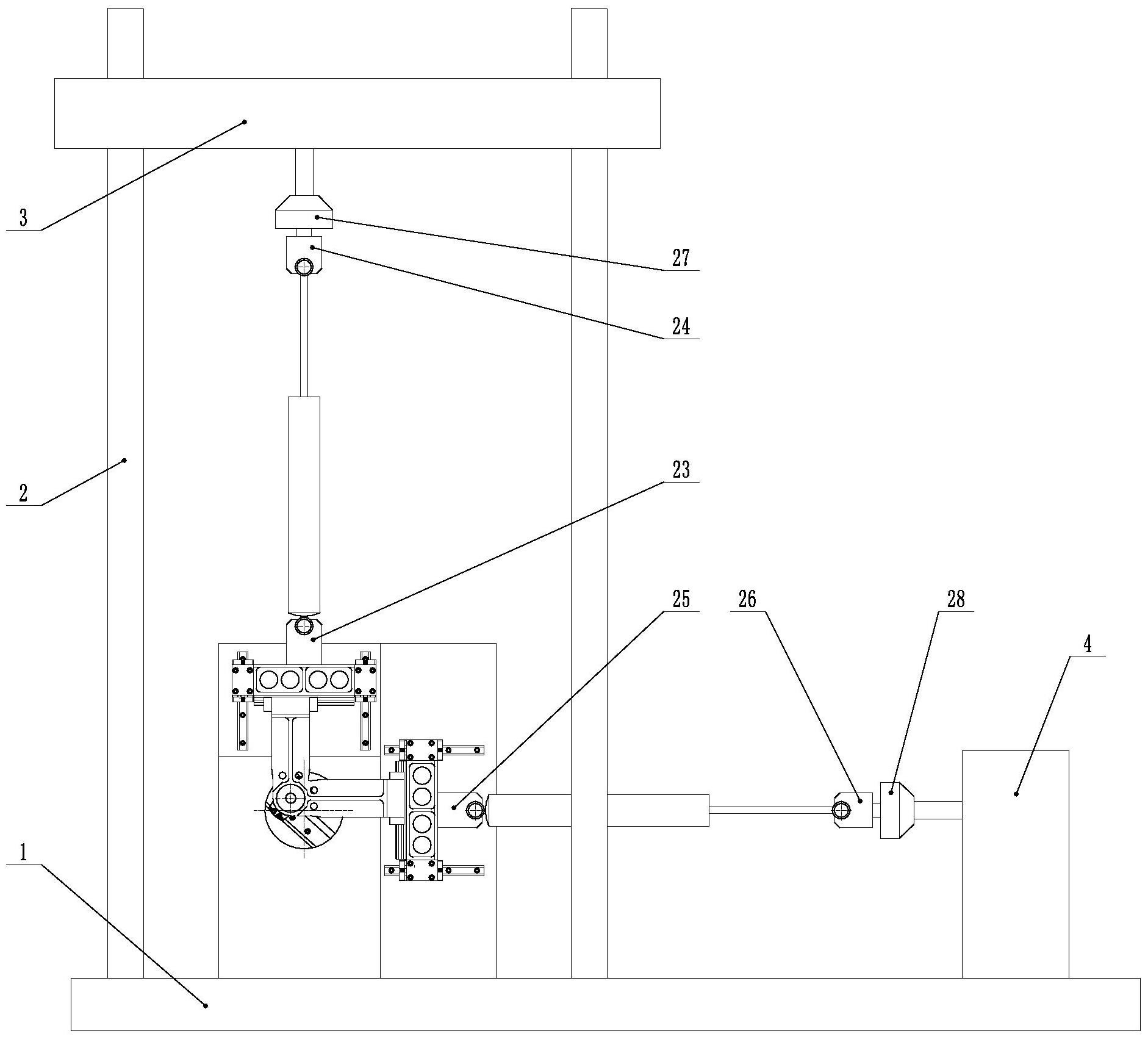 7.如权利要求1或2所述的轨道列车减振器正弦示功机,其特征在于:所述机架包括底座、立柱、第一支架和第二支架,所述立柱安装在底座上,所述第一支架安装在立柱上,所述第二支架安装在底座上。