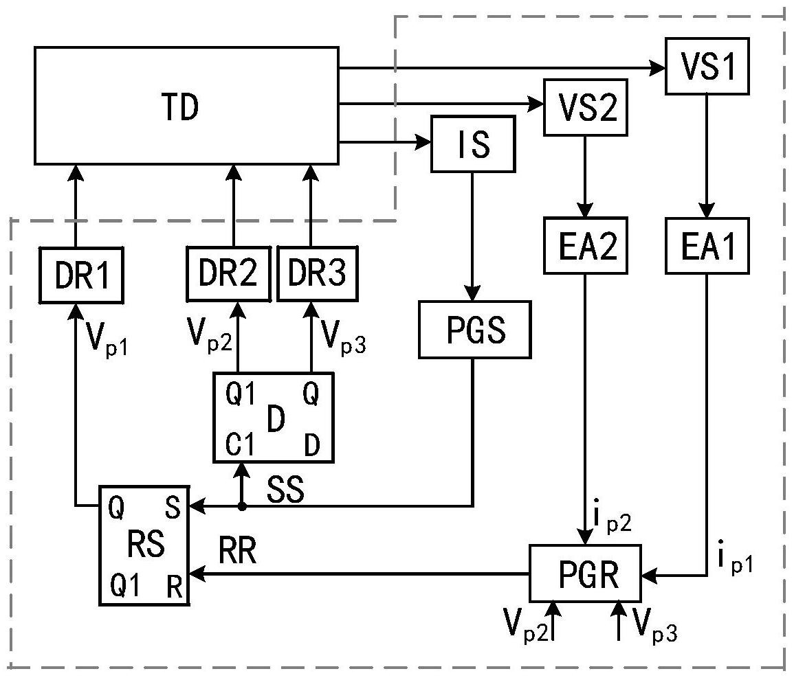 信号SS经过第二触发器D产生脉冲信号Vp2和Vp3,用以控制变换器支路开关管的导通和关断。