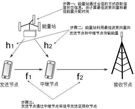 (2)能量站通过中继反馈获得发射节点与中继节点,中继节点与接收节点之间的信道响应。