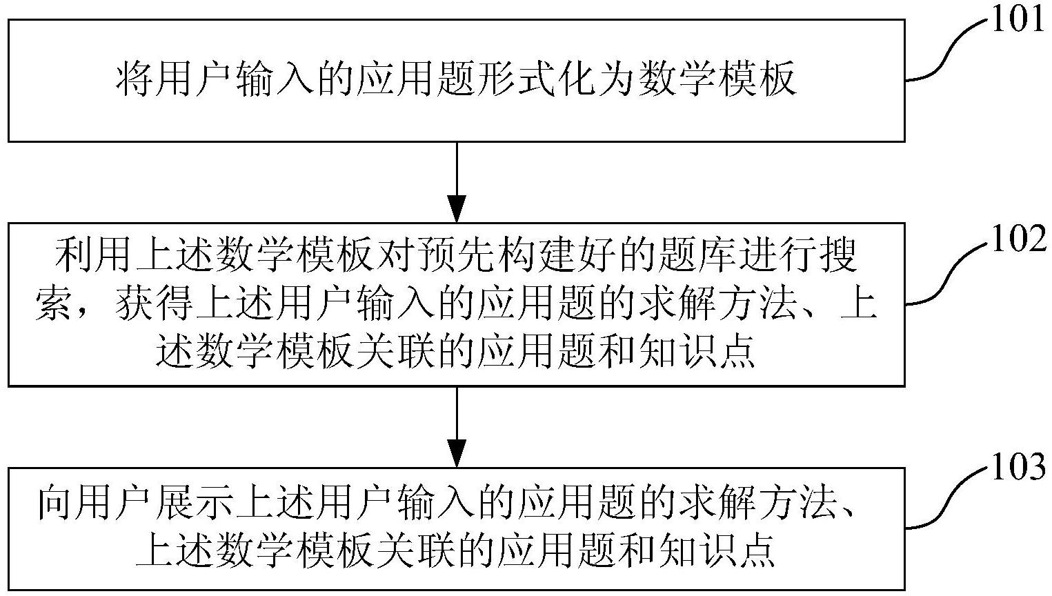 3.根据权利要求1所述的方法,其特征在于,所述利用所述数学模板对预先构建好的题库进行搜索之前,还包括:通过将用户输入的应用题形式化为数学模板的过程对题库进行自动分类,获得所述题库的标签信息,以完成所述题库的构建。