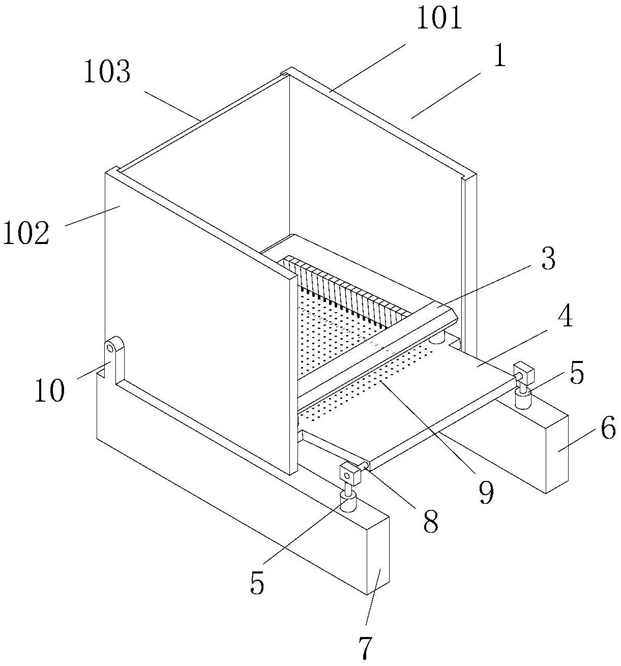 4.根据权利要求1所述的一种岩层及地表沉陷模拟箱式试验装置,其特征在于:所述左、右侧板的前部的相向内侧设置有前滑槽,左、右侧板的后部的相向内侧设置有后滑槽,前侧板置于前滑槽内,后侧板置于后滑槽内。