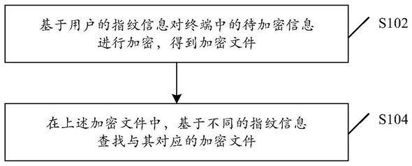 3.如权利要求1所述的方法,其特征在于,基于用户的指纹信息对终端中的待加密信息进行加密,得到加密文件,包括:基于用户的指纹信息对待加密信息进行加密,得到加密文件;
