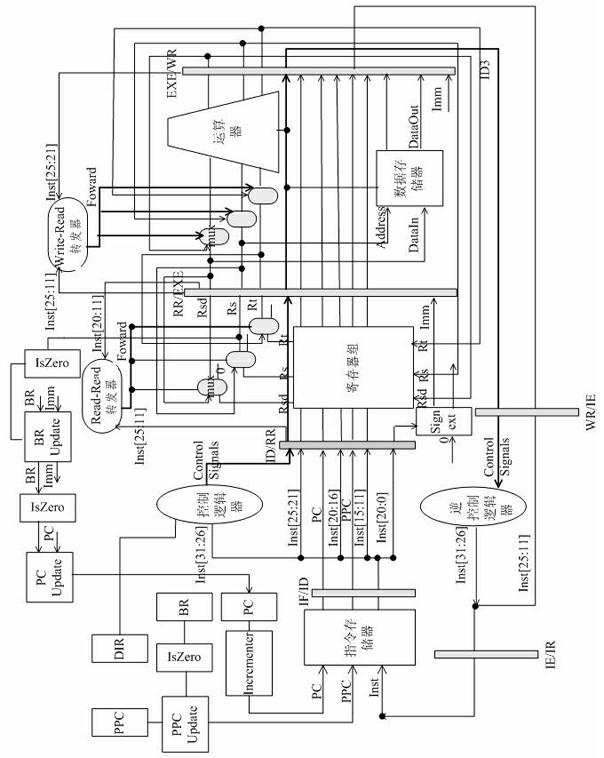RR/EXE段寄存器,用于保存所述读寄存器阶段与所述执行运算/访问存储器阶段之间的数据;