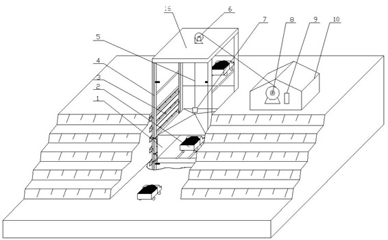 6.根据权利要求1所述的一种露天矿矿用汽车整车竖直提升运输系统,其特征在于,所述的制动器(14)为液压制动器。