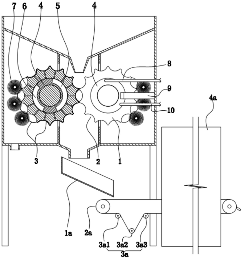 3.根据权利要求1所述的一种冷冻鱼丸加工设备,其特征是,所述负压槽沿导气套周向延伸,所述两转盘的轴线位于同一水平面上,且以该水平面为基准平面,所述负压槽的一部分位于基准平面上方,另一部分位于基准平面下方。