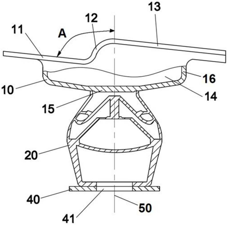 10.根据权利要求8所述的悬架用弹簧座,其特征在于,所述轴线(50)与第一承载缘(11)的顶面的夹角A为80°。