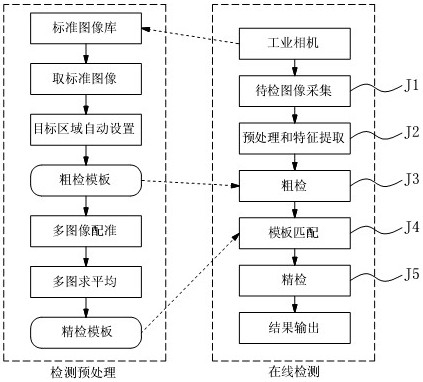 步骤J3)将待检图像与粗检模板图像进行面积差值运算以进行粗检判断,剔除具有明显缺陷的零件;