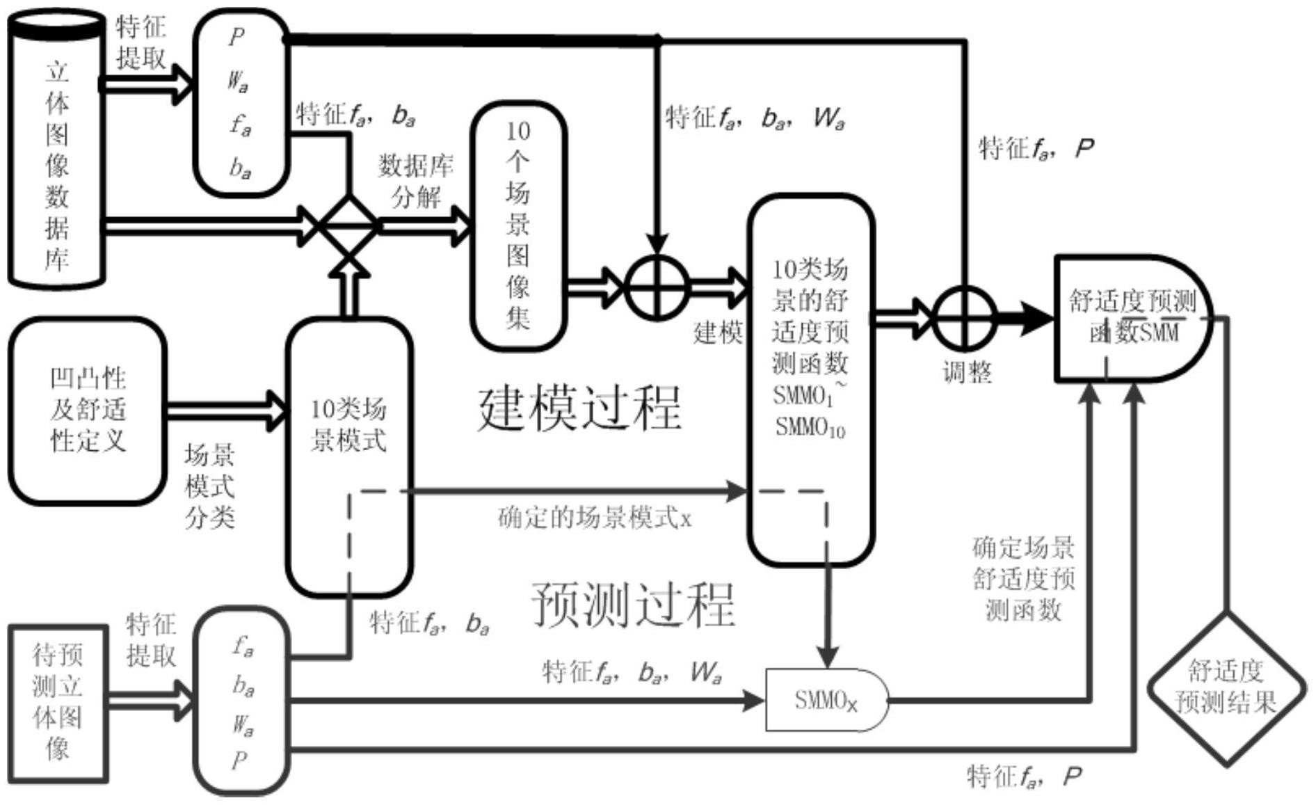 Z2、根据待处理立体图像的右视点视差灰度图像中的前景目标相对于屏幕的凹凸性以及是否处于舒适区、后景区域相对于屏幕的凹凸性以及是否处于舒适区,确定待处理立体图像所属的场景模式,具体为:若前景目标凸于屏幕且处于非舒适区、后景区域凹于屏幕且处于非舒适区,则确定待处理立体图像属于第1种场景模式;若前景目标凸于屏幕且处于非舒适区、后景区域凸于屏幕且处于非舒适区,则确定待处理立体图像属于第2种场景模式;若前景目标凹于屏幕且处于非舒适区、后景区域凹于屏幕且处于非舒适区,则确定待处理立体图像属于第3种场景模式;若前景目标凸于屏幕且处于非舒适区、后景区域凹于屏幕且处于舒适区,则确定待处理立体图像属于第4种场景模式;若前景目标凸于屏幕且处于非舒适区、后景区域凸于屏幕且处于舒适区,则确定待处理立体图像属于第5种场景模式;若前景目标凸于屏幕且处于舒适区、后景区域凹于屏幕且处于非舒适区,则确定待处理立体图像属于第6种场景模式;若前景目标凹于屏幕且处于舒适区、后景区域凹于屏幕且处于非舒适区,则确定待处理立体图像属于第7种场景模式;若前景目标凸于屏幕且处于舒适区、后景区域凹于屏幕且处于舒适区,则确定待处理立体图像属于第8种场景模式;若前景目标凸于屏幕且处于舒适区、后景区域凸于屏幕且处于舒适区,则确定待处理立体图像属于第9种场景模式;若前景目标凹于屏幕且处于舒适区、后景区域凹于屏幕且处于舒适区,则确定待处理立体图像属于第10种场景模式。