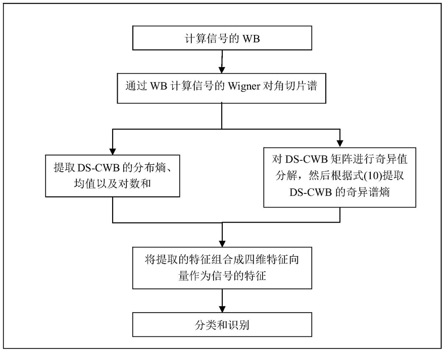 3.如权利要求2所述的基于Wigner对角切片谱的射频指纹特征提取方法,其特征是:第二步:引入Wigner对角切片谱;对于WB,其对角切片谱通过设置f1=f2=f得到,此外加入Choi-Williams核函数 消除交叉项干扰;