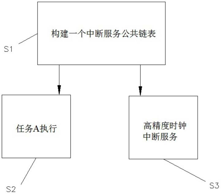 该任务执行的步骤包括如下子步骤:任务中若有需要请求高精度时钟中断服务的子任务,则构建子任务信息;检测该中断服务公共链表是否加锁,若加锁,继续等待并检测,直到解锁;将该中断服务公共链表加锁,将子任务信息加入到该中断服务公共链表中,然后将该中断服务公共链表解锁;及等到该子任务执行完成后加锁该中断服务公共链表,然后删除该子任务信息,并将该中断服务公共链表解锁;