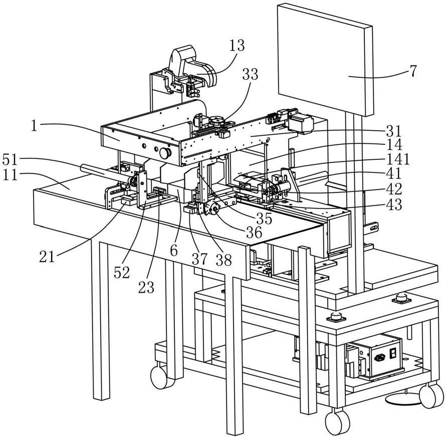 其特征在于:所述条码贴合机构包括横跨所述传输带的横向支架,所述横向支架上分别设置有横向导轨、滑块及电机,所述滑块与所述横向导轨滑移配合,所述电机通过皮带与所述滑块传动连接;所述滑块安装有升降气缸,所述升降气缸的输出端通过转向机构安装有伸缩气缸,所述伸缩气缸的输出端设置有标签吸头。