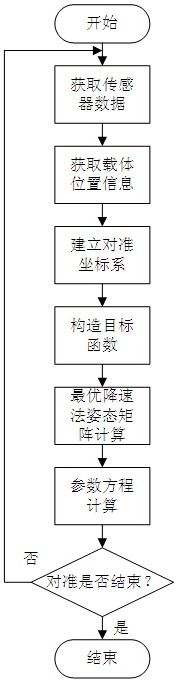 (2)依据载体从凝固惯性坐标系变换到当前载体坐标系建立初始对准目标函数,基于目标函数计算最优的坐标变换姿态四元数,即最优降速法;