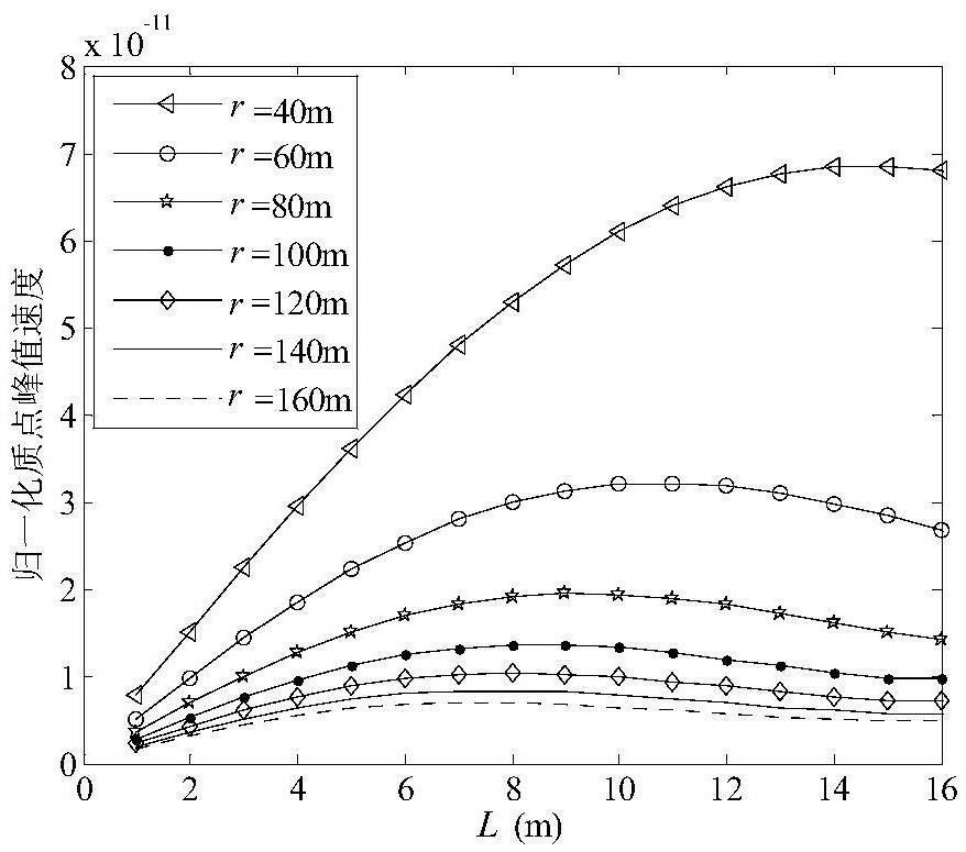 步骤4、构建柱状药包爆破振动质点峰值速度衰减函数,即柱状药包爆破振动质点峰值速度预测公式:令柱状药包爆破振动质点峰值速度预测公式PPVC偏导等于零求得对应测点的有效药包长度L′:得到对应测点峰值速度达到最大值时,柱状药包长度L=L′。