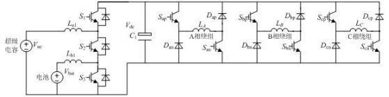 步骤五:通过对三开关管串联型双输入DC-DC变换器控制,可使超级电容吸收不对称半桥功率变换器控制开关磁阻电机时的续流回馈能量,避免对电池的频繁充电,利于电池健康管理;