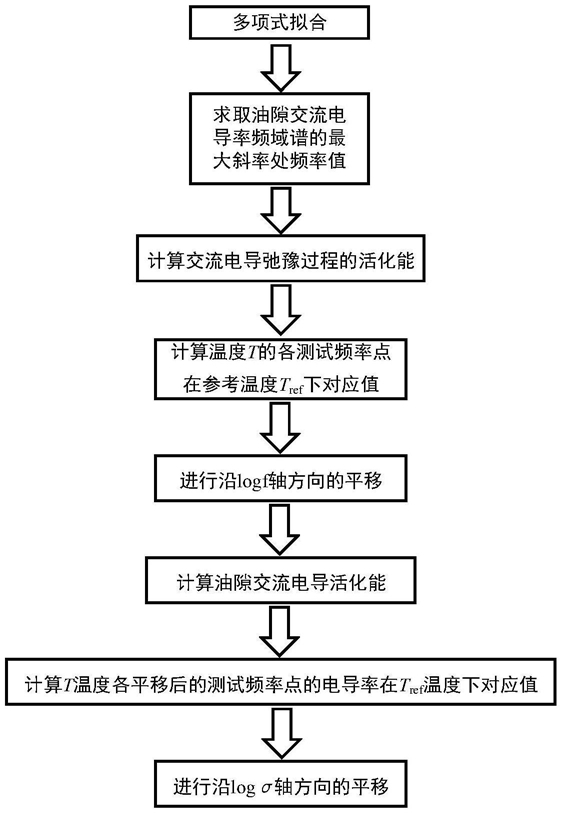 1.不同温度下变压器油隙交流电导率频域谱划归至参考温度的方法,将不同温度下的变压器油隙交流电导率频域谱划归到同一参考温度下以更准确的分析不同环境温度下变压器油纸绝缘系统频域介电响应的测试结果,其特征在于,包含以下步骤: