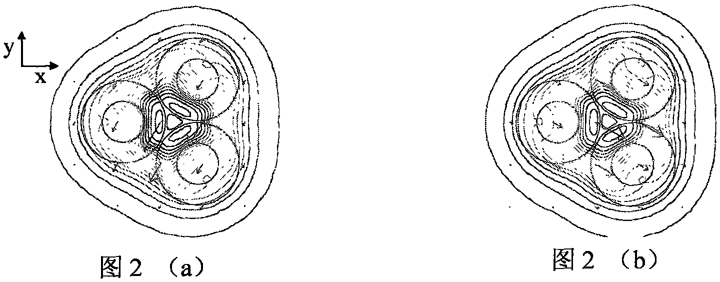 5.25E-6m,外圆半径为R2=R4=R6=1.05E-5m;左侧圆环芯中心坐标为(-9.31E-6m,0),右上侧圆环芯中心坐标为(9.31E-6m,1.075E-5m),右下侧圆环芯中心坐标为(9.31E-6m,-
