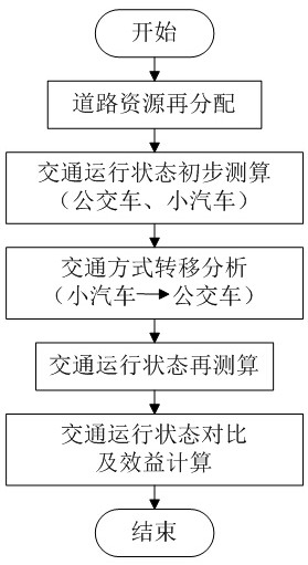 1.一种考虑交通方式转移的公交专用道设置效益计算方法,其特征在于:包括以下步骤: A)根据公交专用道的设计方案量化公交车和小汽车的道路资源; B)对公交车和小汽车在设置公交专用道后的运行速度进行初步测算; C)根据出行方式转移曲线确定小汽车向公交车的转移量; D)交通运行状态再次测算; E)交通运行状态对比及效益计算; 所述步骤A)根据公交专用道的设计方案量化公交车和小汽车的道路资源,包括如下步骤: a)确定路段上的交通流量特性; b)确定路段上的客运量比重; c)确定道路资源比重; 所述步骤B)对公交车和小汽车在设置公交专用道后的运行速度进行初步测算,包括如下步骤: a)测算公交车和小汽车的路段车速; b)测算公交车和小汽车的行程车速; 所述步骤C)根据出行方式转移曲线确定小汽车向公交车的转移量,包括如下步骤: a)公交出行时间预测; b)小汽车出行时间预测; c)出行方式转移量测算; 所述步骤D)交通运行状态再次测算,包括如下步骤: a)再次测算公交车和小汽车的路段车速; b)再次测算公交车和小汽车的行程车速; 所述步骤E)交通运行状态对比及效益计算,包括如下步骤: a)测算设置公交专用道前的出行总时耗; b)测算设置公交专用道并发生交通方式转移后的出行总时耗; c)测算人均出行时耗减少率; 所述步骤A)中: 步骤a)需要获得的数据包括:总流量q,公交车的流量qb,小汽车的流量q。; 步骤b)中需要获得的数据包括:公交车的车均载客人数ab、小汽车的车均载客人数a。、公交车的客运量比重kb、小汽车的客运量比重kc; 步骤c)中需要获得的数据包括:η条机动车道,m条公交专用道; 所述步骤B)中: 步骤a)需要获得的数据包括:路段的可能通行能力C,公交车的路段车速Vbr,小汽车的路段车速Vct; 步骤b)中需要获得的数据包括:交叉口间距L,公交车的行程车速Vbt,公交车在交叉口的延误时间tbd,小汽车的行程车速Vct,小汽车在交叉口的延误时间tcd ; 所述步骤C)中: 步骤a)需要获得的数据包括:到站时间^,等待时间U,乘车时间tt,从站点到达目的地时间ta; 步骤b)中需要获得的数据包括:路段行驶时间,进出停车场的时间知和寻找停车位时间td; 步骤C)中需要获得的数据包括:出行时间差异率X、出行方式转移比例y、出行方式转移后小汽车的出行量Qci; 所述步骤D)中: 步骤a)需要获得的数据包括:路段的可能通行能力C,公交车的路段车速Vbr,小汽车的路段车速Vct; 步骤b)中需要获得的数据包括:交叉口间距L,公交车的行程车速Vbt,公交车在交叉口的延误时间tbd,小汽车的行程车速Vct,小汽车在交叉口的延误时间tcd ; 所述步骤E)中: 步骤a)需要获得的数据包括:设置公交专用道之前的出行总时耗P1,公交出行的人数PbO,小汽车出行的人数P。。,公交人均总出行时间TbQ,小汽车人均总出行时间TcO ; 步骤b)中需要获得的数据包括:设置公交专用道并发生交通方式转移后的出行总时耗PI1Zav交出行的人数Pbl,小汽车出行的人数Pu,公交人均总出行时间Tbl,小汽车人均总出行时间Tcl; 步骤c)中需要获得的数据包括:设置公交专用道之前的所有出行者的人均出行时耗So,设置公交专用道并发生交通方式转移后的所有出行者的人均出行时耗S1,以及所有出行者的人均出行时耗减少率P ; 所述步骤B)的步骤a)中以BPR函数为基础,充分考虑了公交停靠站影响、交叉口信号干扰以及车辆性能等因素,在直线式公交站点路段和港湾式公交站点路段两种形式下分别建立了公交车和小汽车在城市道路上的流量-速度模型; 所述步骤C)的步骤c)中进行出行方式转移量测算时:由出行方式转移比例与出行时间差异率之间的关系即可得到小汽车向公交车出行方式的转变比例,进而得到出行方式转移后小汽车的出行量; 所述步骤E)的步骤c)通过计算设置公交专用道前后的人均出行时耗,进而得到所有出行者的人均出行时耗减少率,并以人均出行时耗减少率作为设置公交专用道的效益指标。