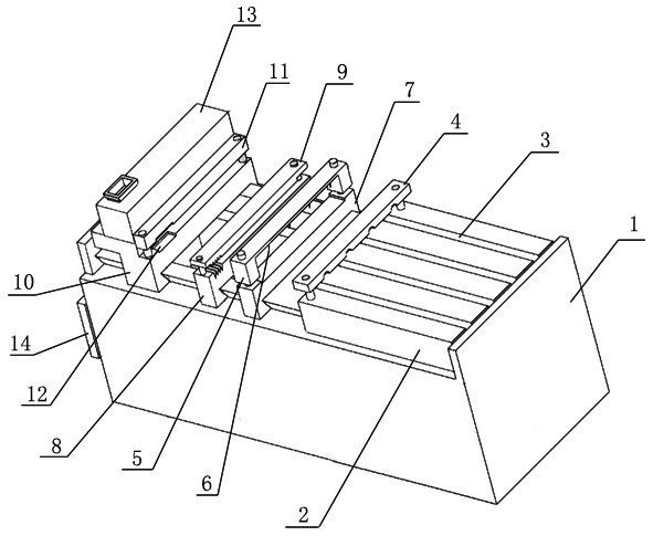 2.根据权利要求1所述的自动穿胶壳机,其特征在于:所述线槽座上设置的夹板的两端由与PLC连接的第一液压系统驱动升降;在夹板上开设有与布线槽位置对应的凹槽。