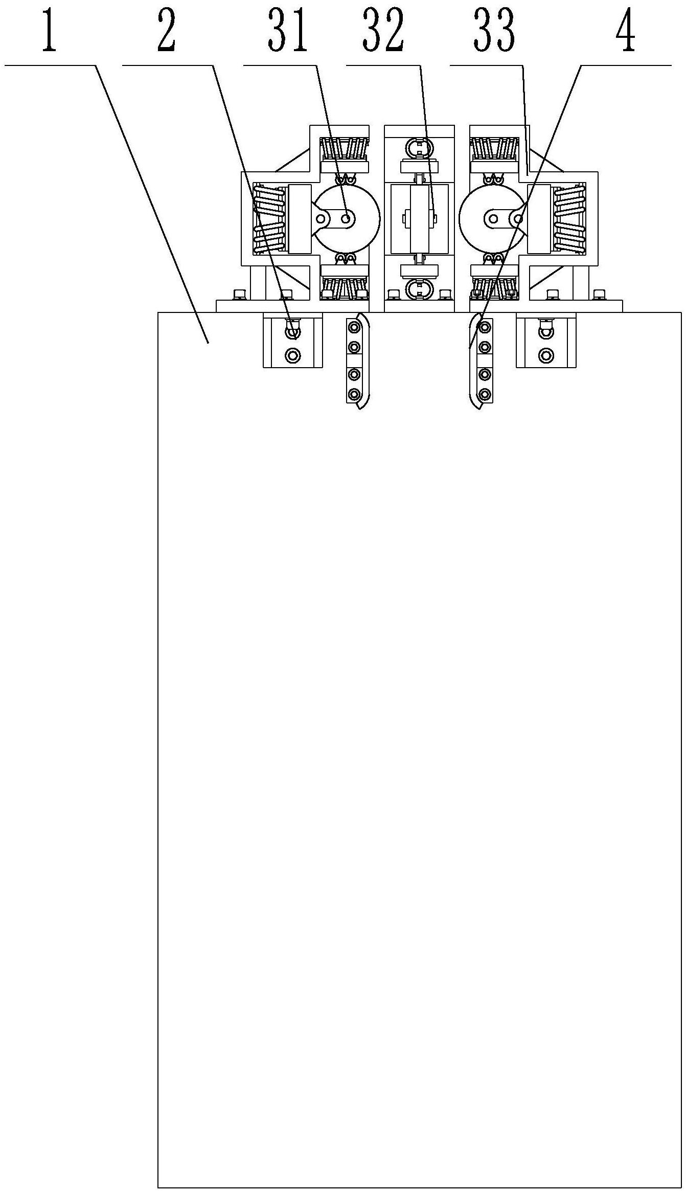 5.根据权利要求1所述的缓冲和能量采集滚轮罐耳,其特征在于,所述机座(7)为“凸”字型结构,在该结构的凸起内通过钢丝绳减震器连接主能量采集模块(6),在该“凸”字型结构的上下两翼内安装两个副能量采集模块。