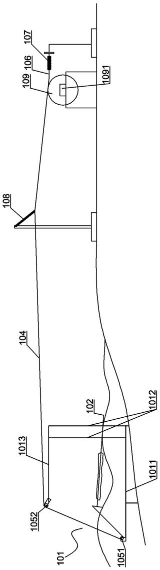 3.根据权利要求1所述的漂浮机构,其特征在于,漂移结构包括轨道的在竖向倾斜的斜段或弯曲的弯段,所述浮子上设有沿斜段或弯段的延伸方向导向移动装配在轨道上的导向件。