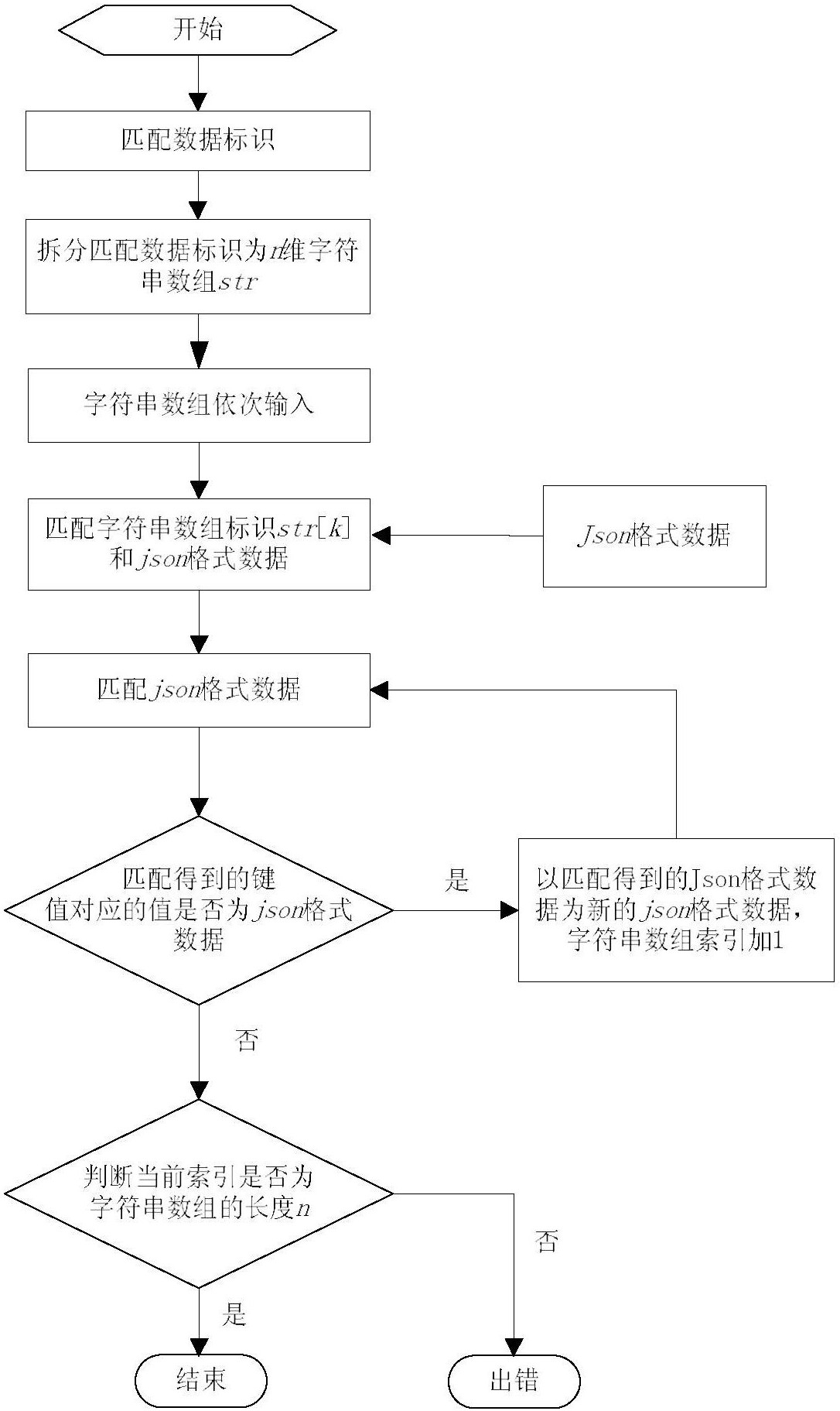 4.5)取w=w+1,以str[w+1]为新的匹配键值, 为新的json格式数据,转入步骤